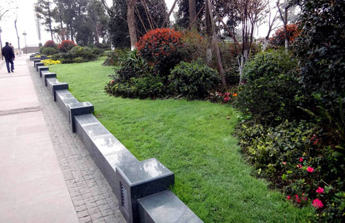 据李寿仁介绍,保留下来的大树主要有两种处理手法:像天竺桂、黄葛树等几十年的老树,在周围搭建木质平台,既可以保护大树,又可供游人休息;一些香樟、桂花、银杏等,则用森林绿整石围边,搭配草皮、三色堇、球类、日本红枫等植物,采用花境的布置手法,建成一个个面积大小不一的花坛,营造出四时风光各不同的江南园林意境。而平滑、细腻的森林绿整石,既是景观的一部分,又是漂亮的坐凳,兼顾了景观与实用的功能。