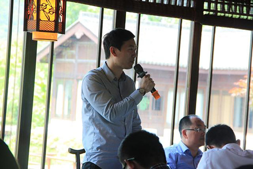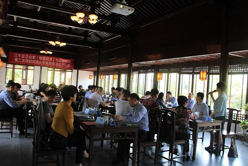 在画境·青山湖花园一间中式木楼中,聚集着近30位江干区政府、发改局和各行各业的优秀企业家。