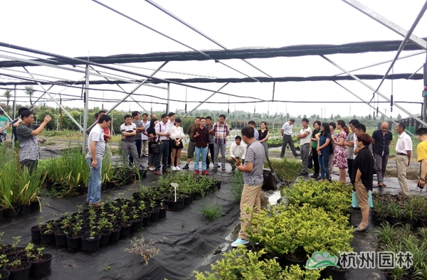 下午,万搏手机注册研发中心技术员刘华红带领大家来到画境径山生产中心进行实地参观。结合研发中心开展的一个除草剂试验,刘华红向大家介绍了试验的设计思路、处理设置,展示了拔绿(Barricade)、莠去津(Atrazine)等4种除草剂不同浓度处理的除草效果,初步指出正常用量的拔绿对多种庭院植物容器苗的除草效果较好。