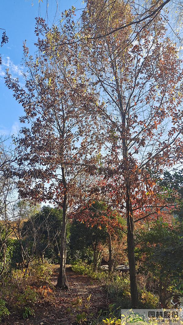 在初冬的日子里,怎能少了水杉、池杉、水松这类落叶针叶树呢。远看,褐色的枝叶、竖向的线条,满满的都是初冬的静谧。如果在林下的园路穿梭,还能看到细细密密的落叶洒满林间,丝丝缕缕的阳光洒落进来,好希望时间一直停留在这一刻。