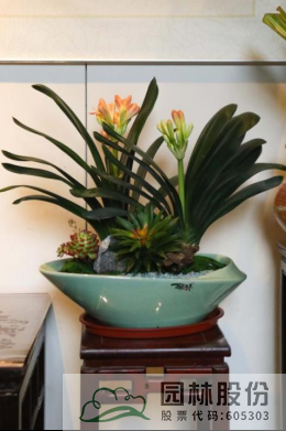 君子兰艺术组盆是一种高雅典雅的植物,它们的花朵清新秀丽,叶子翠绿欲滴,象征着吉祥和幸福,将君子兰摆放在家中,为新的一年带来美好祝福。
